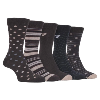 Farah 5 Pack Mens Thin Breathable Classic Polka Dot Patterned Soft Top Cotton Dress Socks FCS273BRNGRY (Polka Dot) Multicolour Size UK 6 11