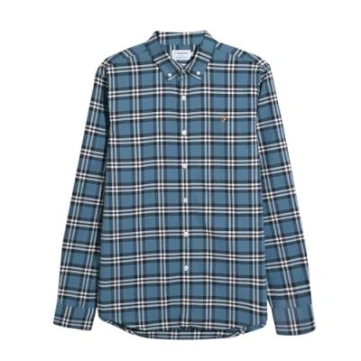 Farah Men's Brewer Check Organic Cotton Long Sleeve Shirt, M, Blue Tide