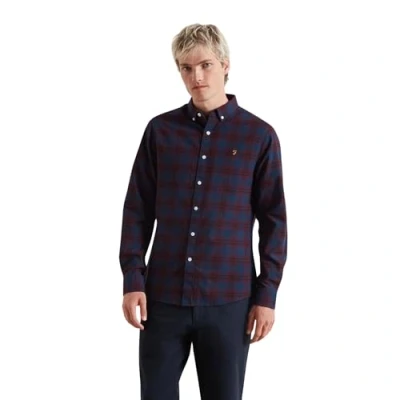 Farah Men's Brewer Check Organic Cotton Long Sleeve Shirt, L, Bordeaux