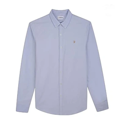 Farah Men's Brewer Slim FIT Cotton Oxford Shirt, Sky Blue, S