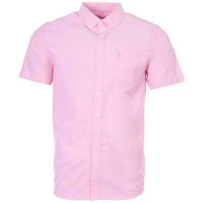 Crafted from a blend of cotton and polyester, the Drayton Oxford Shirt from Farah is fitted with a classic button down collar, full button placket, patch chest pocket and short sleeves. Finished with the iconic Farah logo embroidered at the chest. The perfect short sleeve shirt to upgrade your wardrobe. Modern Fit, Oxford Cotton Polyester Blend, Button Down Collar, Full Button Placket, Chest Patch Pocket, Short Sleeves, Farah Branding. Style & Fit: Modern Fit, Fits True to Size. Composition & Care: 65% Cotton, 35% Polyester, Machine Wash.