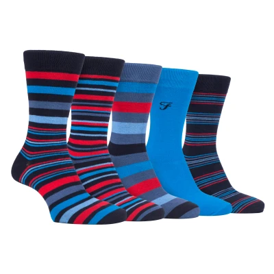 Farah Mens 5 Pack Natural Organic Bamboo Bright Striped Patterned Socks Blue Viscose Size UK 6 11