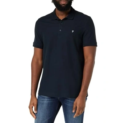 Farah Mens Cove Short Sleeve Polo Shirt in Navy Cotton Size Small