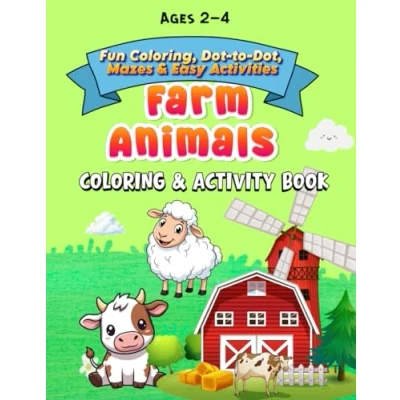 Farm Animals Coloring & Activity Book for Kids Ages 24: Fun Coloring, Dot to Dot, Mazes Easy Learning Activities