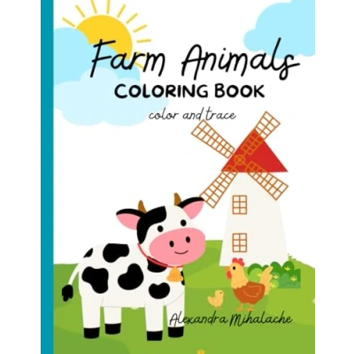 Farm animals coloring book: color and trace
