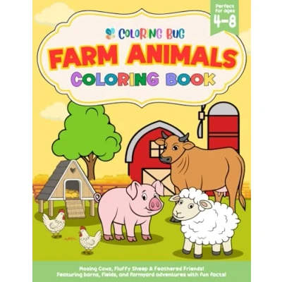 Farm Animals Coloring Book for Kids Ages 4 8: 52 Bold, Cute & Educational Designs