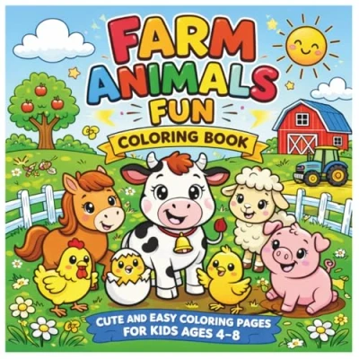 Farm Animals Coloring Book for Kids Ages 48: Cute and Easy Animal Pages with Bold Simple Designs