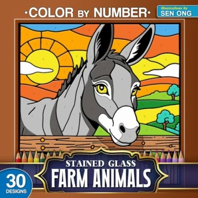 Farm Animals Stained Glass Color by Number: 30 Joyful Scenes of Life on the