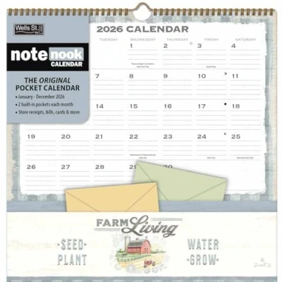Style: Wall CalendarsSize: LargeOpen Height (mm): 310Open Width (mm): 305View: Month To ViewHanger Type: Metal LoopBinding: SpiralWeek Starts On: Sunday