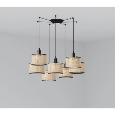 Perfect for casual flair in any setting, the Mambo 7-Light Black and Rattan Triple Cylindrical Cluster Drop Light is an elegant choice for many decors. Its lightweight rattan shades are trimmed in black making it easy to coordinate with existing colours and finishes while lending lovely illumination to any space.