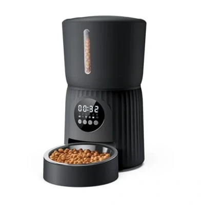 Faroro Automatic Cat Feeder, 4L Feeder with Timer, Portion Control & 10s Voice Recording, 1 6 Meals for Cats Small Dogs (Black)