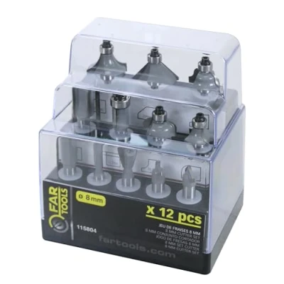 Cutter set shank diameter 8 mm Box contents: 12 pieces Packaged in wooden box Package dimensions (L x W x H) in cm: 17 x 14 x 5 cm, Weight: 2.20462262E-5 Pounds, Manufacturer: FARGROUP EUROPE