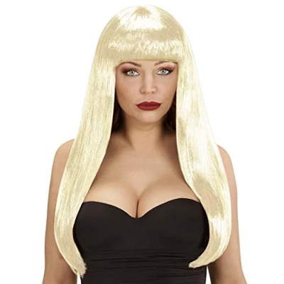 With this wig, from Widmann, you are just right to complete your costume for carnival in the best possible way Included is a beautiful synthetic hair wig with bangs in the colour blonde The hair of this wig is beautifully shiny and straight cut. It is the ideal accessory for many costumes at carnival or even with your outfit in everyday life The wig made of synthetic hair is extremely easy to clean and can be worn without time-consuming styling. So you are immediately ready for the party Other beautiful costumes and accessories can be found in our brand shop. Click on the brand name Widmann below the product title, Manufacturer: Widmann