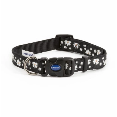 General description Pretty daisy design with a hardwearing nylon base, perfect for all weather conditions and swimming. This collar is adjustable for a comfortable and secure fit, featuring a snap-buckle fastening. Available in three sizes: small (20-30cm), medium (30-50cm), and large (45-70cm). A matching lead is also available. Technical specifications Material: Hardwearing nylon Sizes available: Small (20-30cm), Medium (30-50cm), Large (45-70cm) Other information For comfort and security, check the fit of your dog's collar every day. Committed to reducing packaging and using recycled and recyclable materials. This item is supplied with packaging that is widely recycled.