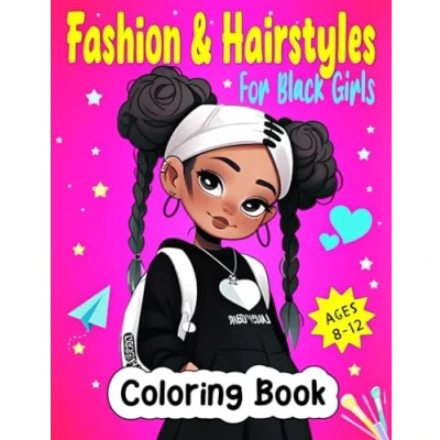 Fashion & Hairstyles Coloring Book for Black Girls: 50 Beauty and Style Pages Suitable Developing Creative Expression Brown Girls Ages 8 12 with Naturally Curly Hair.