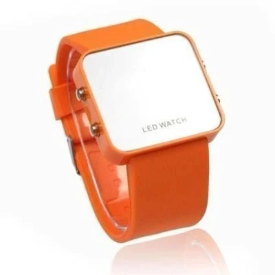 Fashion LED Mirror Face Digital Wrist Watch Unisex Gift (orange)