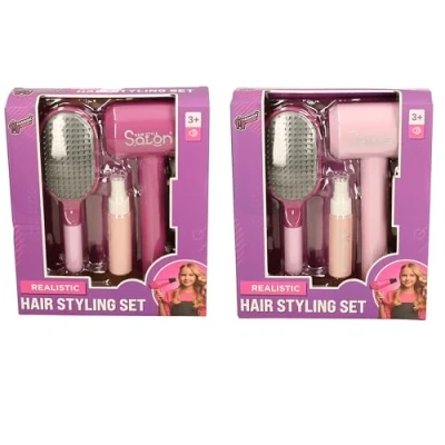 COMPLETE SET: Includes a realistic hair dryer, styling brush, and hair care accessories in lovely pink colours for an authentic salon experience AGE APPROPRIATE: Specially designed for children aged 3 years and above, perfect for imaginative play and role-playing activities BATTERY OPERATED: Functions with 2 x 1.5V batteries (not included) to create a realistic hair styling experience EDUCATIONAL VALUE: Encourages creative play whilst developing fine motor skills and social interaction through pretend salon activities COMPACT SIZE: Perfect dimensions for little hands to hold and manipulate during playtime, with durable construction for lasting enjoyment, Manufacturer: Atoz