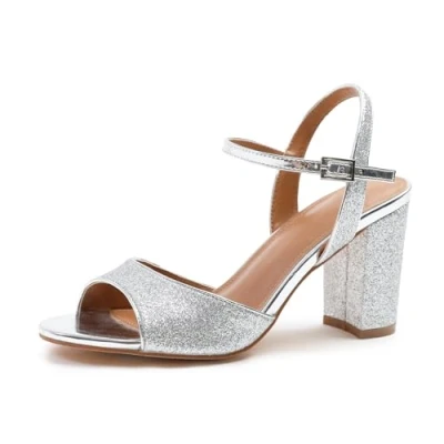 💖 The Womens High Block Heels Glitter Shoe is a stunning choice for any special occasion. With an ankle strap design, these shoes not only provide a secure and comfortable fit but also add a touch of glamour to your outfit. The glitter embellishments catch the light and make a statement, perfect for weddings, proms, graduations, evening parties, and other special occasions. 💖 Designed with comfort and support in mind, these shoes feature a high block heel that provides stability while still being comfortable to wear. The cushioned insole ensures all-day comfort, allowing you to dance and celebrate without any discomfort. 💖 The open-toe design of these strappy dress sandals adds a flirty and feminine touch to your look. The wide fit ensures that these shoes are suitable for a variety of foot shapes and sizes, making them ideal for anyone seeking both style and comfort. 💖 Crafted with attention to detail, these shoes are made from high-quality materials to ensure durability and longevity. The versatile nature of these sandals allows for endless outfit possibilities – whether you pair them with a formal gown, a cocktail dress, or even a jumpsuit, they will elevate your look and make you feel like the belle of the ball. 💖 For a touch of elegance and sparkle, the Womens High Block Heels Glitter Shoe is the perfect choice to make a statement at your next special occasion.