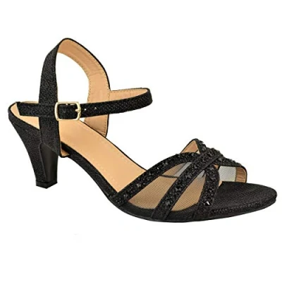 Step out in style with our Kitten Heel Strappy Sandals in Black Faux Leather. These sandals offer a perfect combination of sophistication, comfort, and versatility. Key Features: Kitten Heel: The kitten heel of these sandals provides a touch of elegance and femininity. With a modest height, it offers a comfortable and stable walking experience, making it ideal for all-day wear. Mesh Detail: The mesh detail adds an element of sophistication to any outfit Strappy Design: The strappy design creates an intricate and eye-catching look that enhances the overall style. The straps also provide additional support and security, ensuring a comfortable fit. Open Heel: The open heel design allows your feet to breathe and stay cool during warm weather. It also adds a fashion-forward element, making these sandals perfect for showing off a pedicure or adding a touch of flair to any outfit. Versatile Style: Whether you're attending a casual gathering, heading to the office, or going out for a night on the town, these sandals are versatile enough to complement any occasion. Pair them with dresses, skirts, or jeans for a stylish and put-together look. Durable Construction: These sandals are made from high-quality faux leather, ensuring durability and longevity. The sturdy construction and quality materials make these sandals a reliable choice that can withstand everyday wear and tear. Specifications: Material: Glitter Design: Kitten heel strappy sandals with open heel Heel Height: 2.5' (6.3cm) approx Closure: Adjustable buckle strap for a secure fit Sizes: Multiple sizes available Step up your footwear game with our Kitten Heel Strappy Sandals in Black Faux Leather. These sandals offer a combination of style and comfort, ensuring you look and feel your best all day long. Elevate any outfit with these versatile and fashionable sandals. Where's That From crafts footwear with the utmost care with YOU in mind. Our in-house unique designs offer the latest trends with supreme luxury comfort and unparalleled quality.