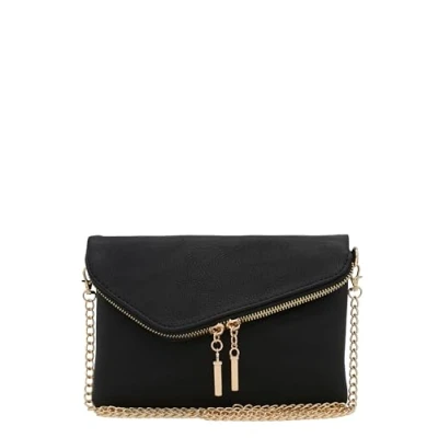 FashionPuzzle Envelope Wristlet Clutch Crossbody Bag with Chain Strap, Black, One Size