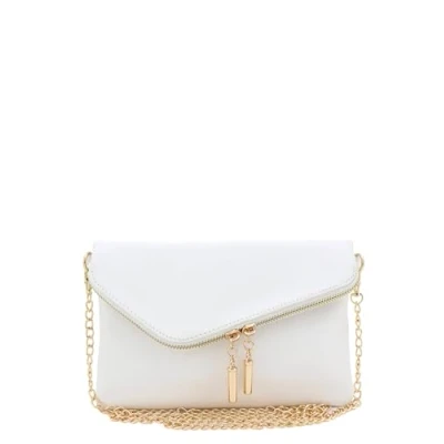 FashionPuzzle Envelope Wristlet Clutch Crossbody Bag with Chain Strap, White, One Size