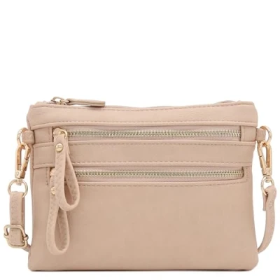 FashionPuzzle Triple Zip Small Crossbody Bag, Nude, One Size