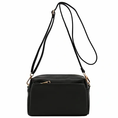 FashionPuzzle Triple Zip Small Crossbody Bag, Black, One Size