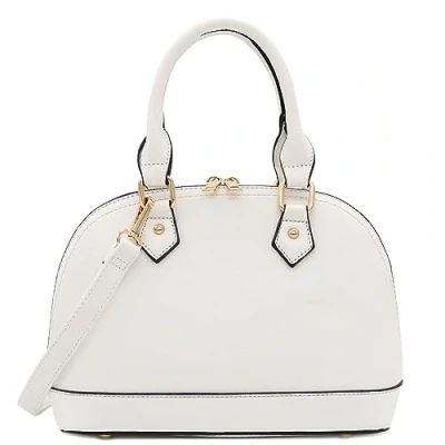 FashionPuzzle Zip Around Saffiano Classic Dome Satchel, White, One Size