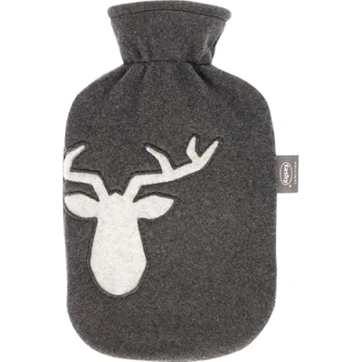Design: Classic shape with practical fleece cover for stylish look. Cover: Stylish dark grey cover with elegant white deer motif as a decorative element including 100% polyester Pure feel-good moments: the hot water bottle gives you moments of pure feel-good warmth and is your faithful companion on cold days. Quality: Our original Fashy hot water bottle is made in Germany from first-class thermoplastic and is environmentally friendly and recyclable. In addition, all Fashy hot water bottles meet the internationally recognised British safety standard BS1970:2012 for hot water bottles. Quality you can rely on! Capacity: this hot water bottle offers a capacity of about 2.0 litres and provides long-lasting warmth. Safety: The original Fashy hot water bottle has a large filling thread (29 mm), which ensures safe and easy filling. This hot water bottle complies with the requirements of Standard 100 by Oeko-Tex.