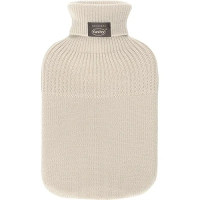 Design: Classic shape with practical turtleneck cover for stylish look. Cover: Elegant knitted cover with turtleneck made from 100% polyacrylic in timeless beige. Pure feel-good moments: the hot water bottle gives you moments of pure feel-good warmth and is your faithful companion on cold days. Quality: Our original Fashy hot water bottle is made in Germany from first-class thermoplastic and is environmentally friendly and recyclable. In addition, all Fashy hot water bottles meet the internationally recognised British safety standard BS1970:2012 for hot water bottles. Quality you can rely on! Capacity: this hot water bottle offers a capacity of about 2.0 litres and provides long-lasting warmth. Safety: The original Fashy hot water bottle has a large filling thread (29 mm), which ensures safe and easy filling. This hot water bottle complies with the requirements of Standard 100 by Oeko-Tex.