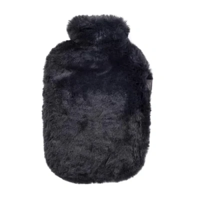 Fashy Hot Water Bottle with Super Soft Cover Made of High Quality Faux Fur Black 2.0 L