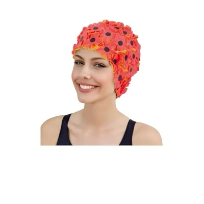Fashy Rubber Bath Cap Made of Flowers, Red
