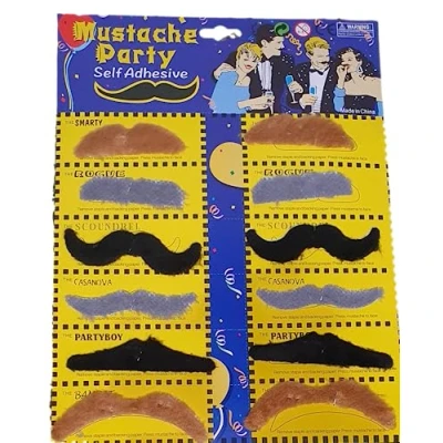 Play dress up with these self-adhesive moustaches! Whether you wear them to a mustache party, Movember event or as part of a Halloween costume, these moustaches will be a big hit Self Adhesive, unisex Moustaches 12x Moustaches in total in retail pack as shown Re-useable, faux fur, one sized, Manufacturer: Fat-catz-copy-catz
