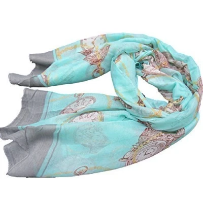 Fat catz copy Clock Time Vintage Antique Style Ladies Fashion Shawl Scarf 180cm x 95cm (Mint Green Scarf)