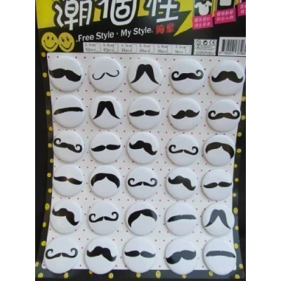 pack of 30 black fashion moustache badges: many different designs as shown great for parties, gift bags, re-sale, etc Diameter: 4cm, pin attachment on rear many other badge designs available from us on Amazon Excellent quality, posted from London by Fat-catz-copy-catz, Manufacturer: Fat-catz-copy-catz