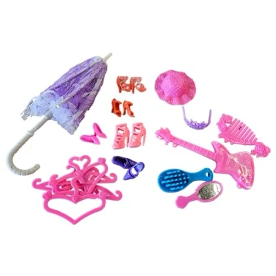 Dolls accessories as shown, colours & styles may vary to those shown each set will include: 5x shoes, 5x hangers & 5 other randomly selected accessories Material: plastic Other doll's clothes available from Fat-Catz on Amazon Suitable for Fashion dolls, Manufacturer: Fat-Catz-Copy-Catz
