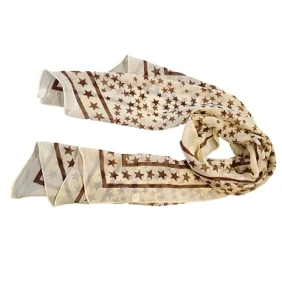 Fat catz copy Sparkly Stars Chiffon Feel Soft Ladies Fashion Shawl Scarf 160cm x 60cm Posted from London (Chiffon Beige with Scarf)