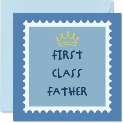 MAKE YOUR FATHER SMILE WITH THIS UNIQUE BIRTHDAY CARD: This exceptional quality Father birthday card for him shows the design 'First Class Father'. If you are looking for a beautiful birthday card Father for him, then then this happy birthday Father card is bound to make him smile. Not just a birthday card for Father this could also be a birthday gifts for Father, Dad or Daddy. WHAT DO YOU GET: The card is printed on one side and BLANK ON THE INSIDE to allow you to write your very own message. The unique fun design is printed on a specially sourced and environmentally responsible board. At 360 microns thick the natural white one-sided gloss board has a quality look and feel. Supplied with a coloured gummed envelope to complement the design and ready to be sealed and sent in the post. Great Father Fathers Day cards, birthday cards Father, Dad birthday card. NO INK SMUDGES: There is nothing worse than writing inside a card to find that the shiny surface makes the ink smudge. This is why we use a high quality one sided coated board. The uncoated side will absorb more of the ink from your pen to make smudging a thing of the past. Father birthday cards, Father birthday cards from Son. SIZES: Greeting Card = 145mm x 145mm, Envelope = 155mm x 155mm, Card Thickness = 360 micron. Happy birthday Father, Fathers birthday card, Father cards birthday, birthday card Father, happy birthday Father card, Father gifts from Son. MADE AND QUALITY CHECKED IN THE UK: We print and manufacture all our products right here in the UK so you can be sure of a fast turnaround and a product that is expertly made. Using environmentally responsible premium board our card is conscious of the responsible management of the world's forests - happy birthday card Father, Father birthday cards.