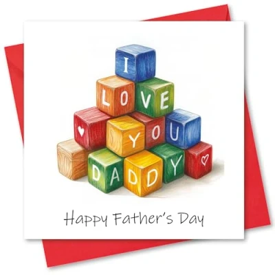 Father's Day Card. Childrens Blocks Design. Card with Envelope. 150x150mm when folded.