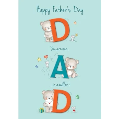A High Quality Greeting Card and Envelope From Piccadilly Greetings Designed and made in the UK - supporting British jobs Caption: Dad Description: Cute Bear And Letters Approximate size: 9 x 6 inches