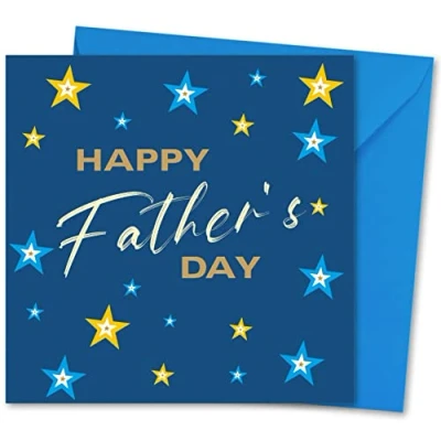 Fathers Day Card. Card for Dad. Gold & Blue Stars Design with matching Envelope. 148 x 148mm. Ecofriendly. Verse inside. Printed and Packed in UK.