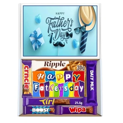 🎁 IDEAL FATHER’S DAY GIFT A thoughtful chocolate hamper suitable for Dad, Daddy, Grandad or Papa, making it a simple and enjoyable gift choice. 🍫 ASSORTED CHOCOLATE & SWEETS Includes a selection of popular chocolate treats offering a variety of flavours in one convenient box. 📮 LETTERBOX FRIENDLY SIZE Designed to fit through most standard letterboxes, allowing for easy delivery without the need to be at home. 🎀 READY TO GIVE Presented in a themed gift box, making it ready to send directly without additional wrapping.