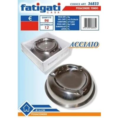 FATIGATI SRL Ashtray Steel Round 16 cm 36833, As Shown in The Picture, Come DA FOTO