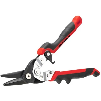 General description The Stanley FatMax® Red Ergo Aviation Snips are designed for left cuts and feature black oxide coated blades. One edge is serrated for grip and anti-slip, while the other is smooth for a cleaner cutting finish. The blades are marked for increased precision, ensuring accurate cuts. Technical specifications Length: 250mm (10in) Blade material: Chrome molybdenum alloy Cutting life: Up to 20x longer than competitive models, equating to 50,000 cycles per tool (when cutting 22 gauge stainless steel) Usage Ideal for cutting through various materials, including stainless steel Ergonomic handles reduce strain and effort during use