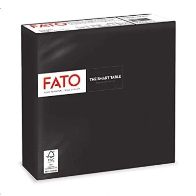 The black Fato napkins are folded 4 times, with an open napkin size of 33 x 33 cm The pack contains 50 2-ply paper napkins made from FSC certified paper that guarantees compliance with strict environmental standards. Perfect for you and the world A wide range of colours that allow you to choose the ideal napkin for any occasion that matches the decor of the evening: energetic and bright or discreet and refined colours Ideal for any occasion: from informal lunch with friends to parties, at home and outdoors Express your mood and colour your table regardless of your style, Fato makes it unique
