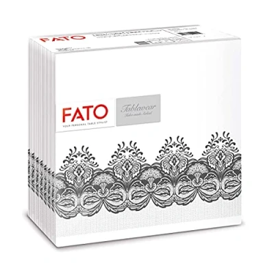 Elegant and pleasant to the touch thanks to the texture similar to that of the fabric. Fato Tablewear Airlaid napkins embellish the table, giving it a refined look Pack contains 50 black bombay napkins. The napkins are folded in 4, with an open size of 40 x 40 cm The high quality of the product, similar to the fabric, combines with the typical convenience of a disposable napkin, making you forget about the discomfort and costs of laundry Ideal for occasions that require careful and impeccable equipment in detail, whether at home or away Tablewear, Tailor-made Airlad, elegance and color on your table. Whatever your style, Fato makes it unique, Manufacturer: Fato