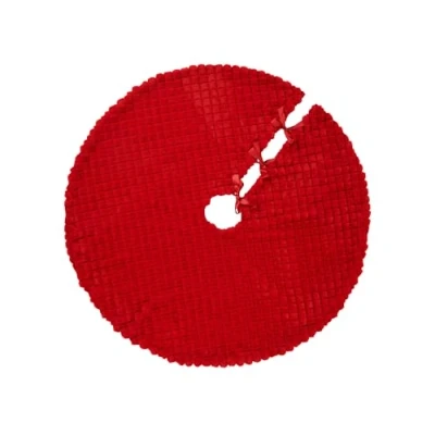 Quilted diamond-effect faux fur with a soft red finish 122 cm diameter for wide coverage around the base Ribbon ties for secure and decorative fastening Complements a variety of festive colour palettes and styles Folds away easily and designed for repeated use