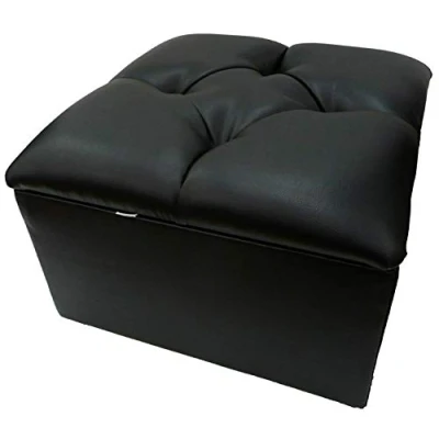 Faux Leather Ottoman/Pouffe/Stool/Storage Box with a Deep Diamante Lid upholstered in 2 Sizes (Medium Size 20" Length, Black)