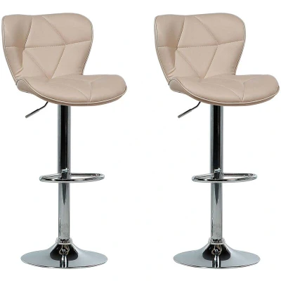 AmazonChic bar stool set featuring timeless design, perfect for modern and glamorous interiors Durable yet pleasant to the touch faux leather upholstery in a warm beige tone Adjustable height and swivel mechanism for utter sitting comfort Thickly padded seat features a decorative stitching for an upscale look Simple assembly, all manuals and tools provided