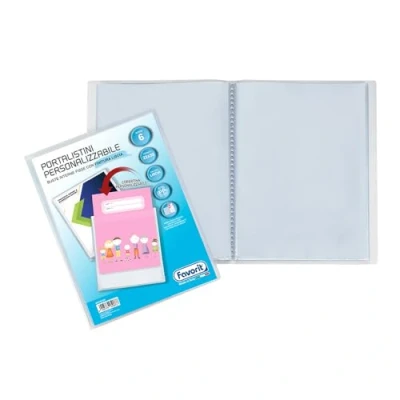 FAVORIT Display Book with Fixed Envelopes and Front Pocket Customisable for Sheets 6 Envelopes, 22 x 30 cm, Transparent